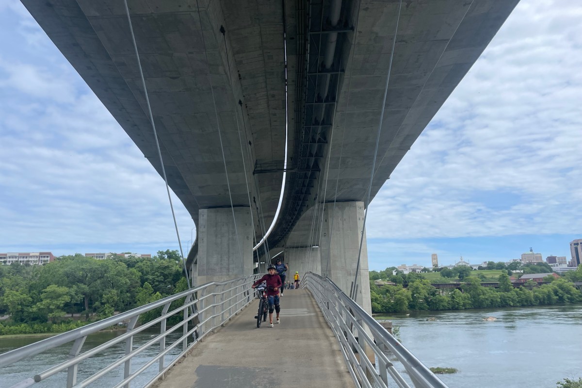 Currently, the James River at Richmond is a destination for tourists, but it is highly utilized by local residents to hike, bike, and play. It is best if you know the area, how to get there, the location of the various trails, and where to find your way to what you want to experience. If you do not know where you are going, you may find yourself in the middle of discomfort and confusion. There is more than one land mass or island; there are bridges, some of great expanse, to take you from one land mass to another; it is not always clear at the outset if the bridge you have set upon will take you where you want to go; and distance and time estimations, as well as the nature of the path forward, are not easily discerned. At least one bridge, while semi-pedestrian friendly, actually is for delivering motor vehicles to the other side of the river, and it is quite a hike on foot. If you have plenty of water, the weather is mild, you have no timeline, you are in good physical shape, and you are not hauling your luggage with you and wearing dress shoes because you are killing time before you head to the airport (true story– I met someone on my adventure exactly in this situation), you will have great exercise as you enjoy a lovely and historic setting.